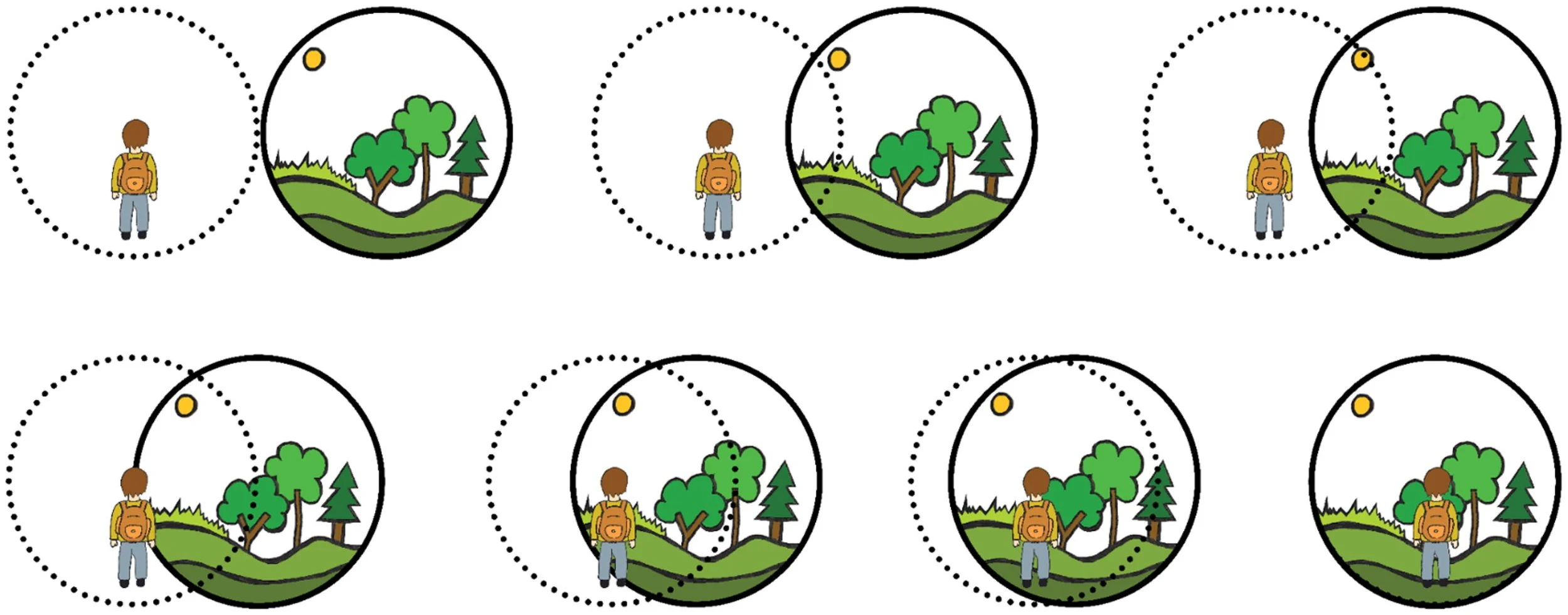 Are you and nature one and the same, or are you, as a member of the human race, completely separate? Your answer will help determine where you fall on the connectedness to nature scale, the most common visual iteration of which is taken from the Inclusion of Nature in the Self (INS) scale, presented below, from Beery et al. (2024) (to find more about the different scales used, click here).